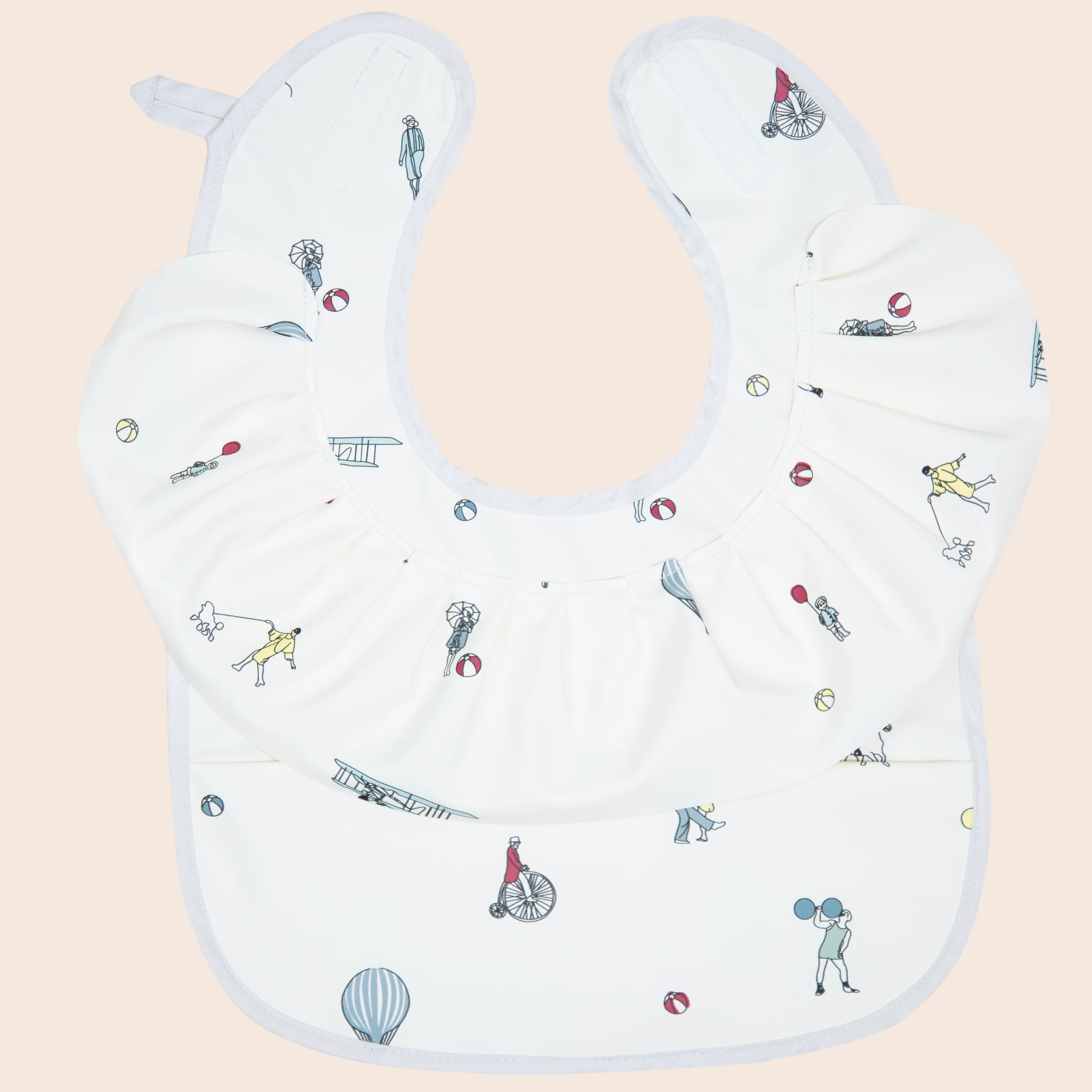 Let your little one dine in style with the Catch Flight Bib — designed with delicate sketch-style illustrations of hot air balloons and airplanes. Made from ultra-light, waterproof material and finished with a sweet ruffle trim, it’s the perfect blend of charm and practicality.
