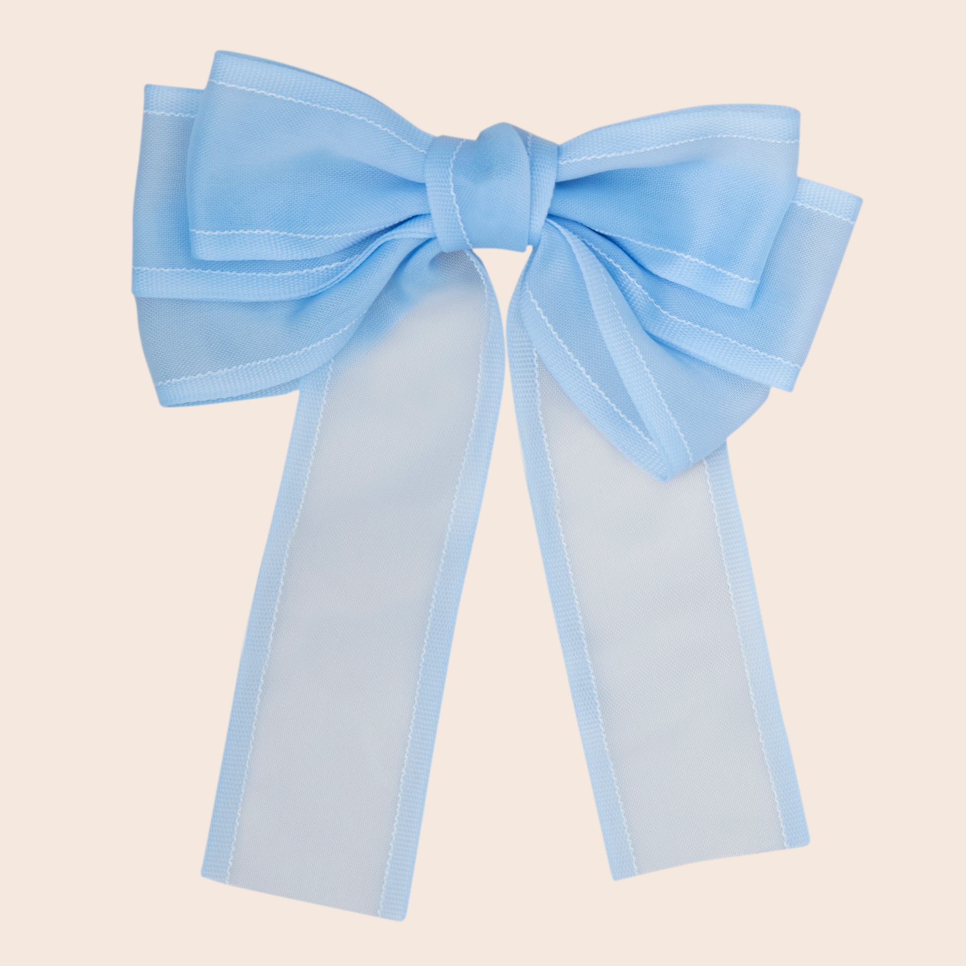Soft pastels and three graceful layers make this bow a standout piece. Simple, sweet, and perfect for dressing up any outfit. This bow can be worn multiple ways. Pair it with a denim dress for a casual look or a linen dress for something more polished. Either way, it’s sure to be the showstopper!