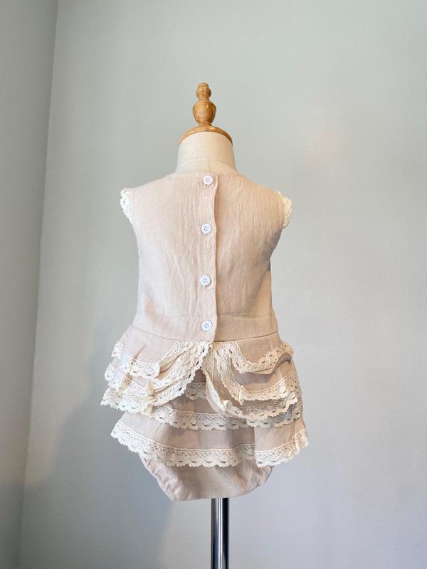 Add a dose of charm to your baby’s wardrobe with this adorable sleeveless top and bloomer set. Featuring delicate lace trim and a breezy, comfy fit, it’s perfect for warm-weather days, playtime, and special moments alike.