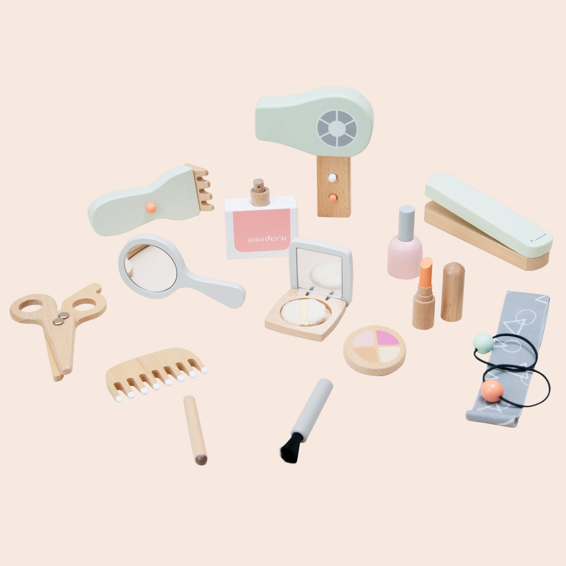 Beauty in a Box is where creativity meets charm. This beautifully crafted wooden play set inspires hours of imaginative fun — whether it's playroom dress-up, pretend beauty salons, or creative role-play adventures.